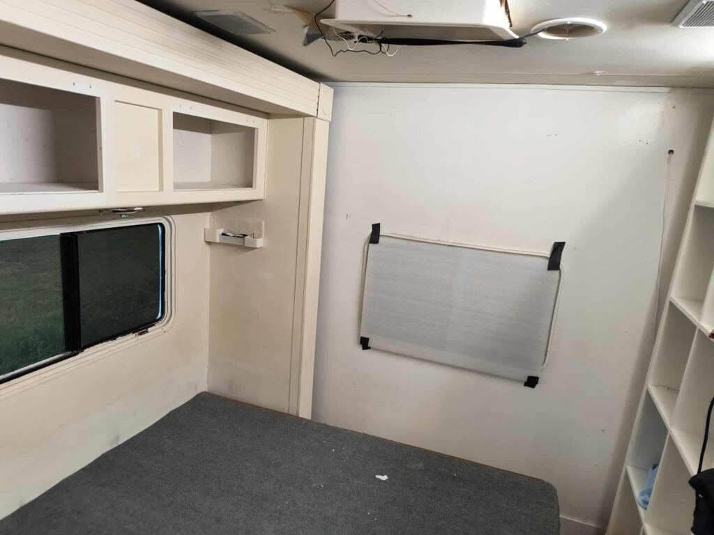 The bedroom came with a platform big enough for an RV-Queen, which is a queen sized mattress but about 5 inches shorter. In other words, it’s the width of a queen and the length of a twin. It also came with foam blocks and a mattress on top of the foam, but the mattress was pretty gross and not terribly comfortable so I got rid of it.