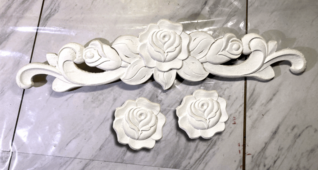 Now I just need to come up with some kind of long ornamental moulding decoration to replace the roses and vines.
